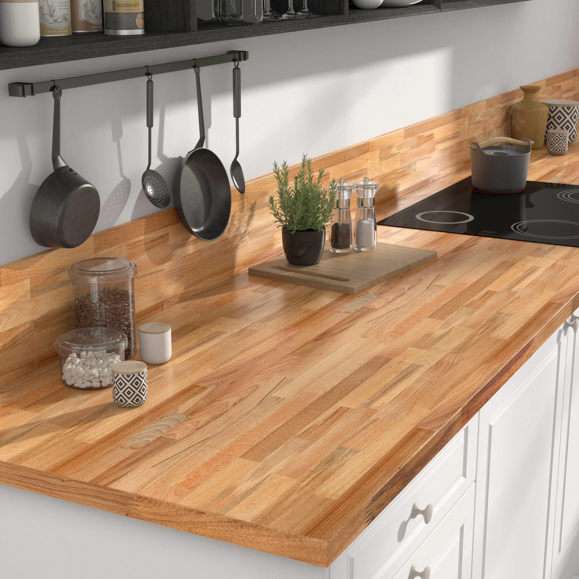 Avantages : très résistante à la chaleur, aux rayures et aux taches, matériau non poreux, hygiénique et facile à entretenir, large choix de finitions (effet marbre, béton ou pierre).